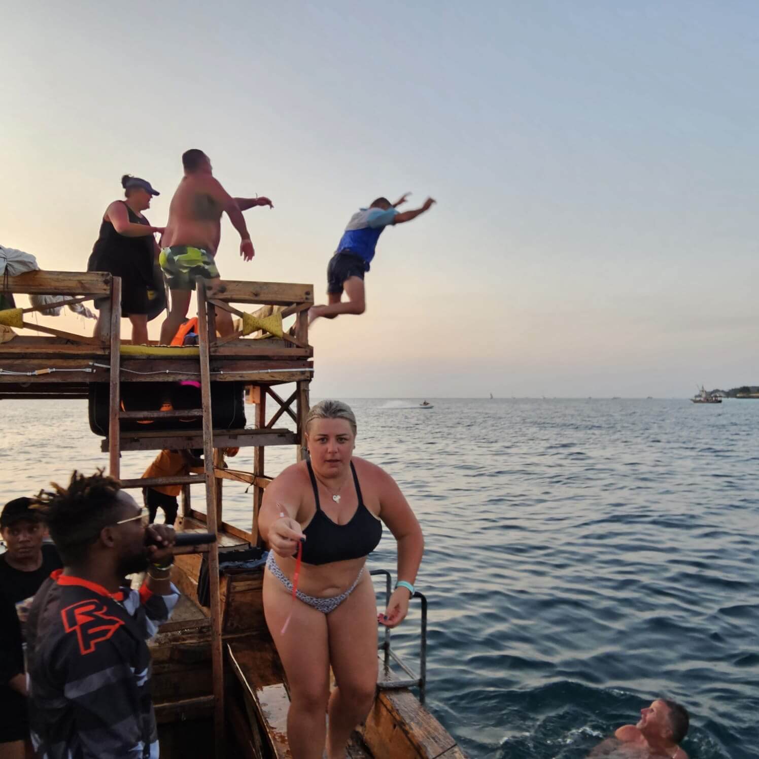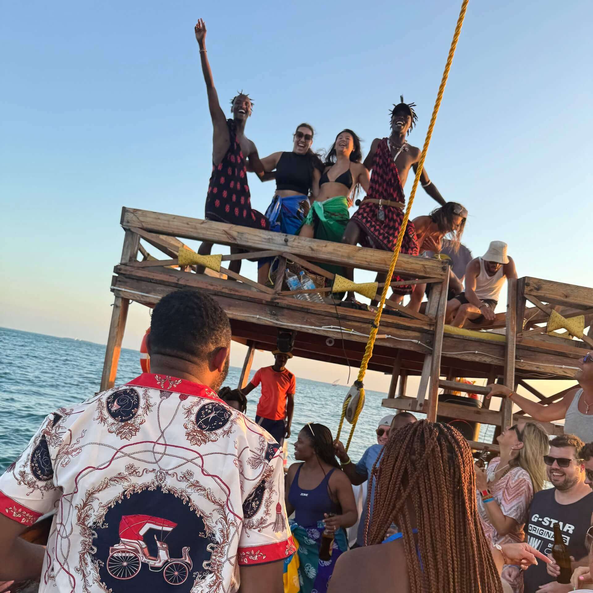 As the sun dips low, watch the sky transform with vibrant colors above the tranquil waves, creating a mesmerizing sight. It’s more than just a cruise—it’s a lively party at sea, filled with music, laughter, and unforgettable moments under the African sky.
